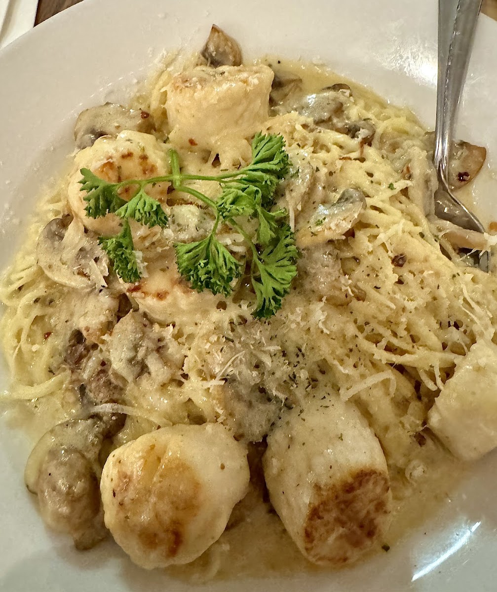 This is a hidden gem that seems to always have a seat available. The food is very good, and they have a real chef in the kitchen that easily accommodates for food allergies and the staff always seems happy to see you. The best part is because their street sign is not readable from the street, there doesn't seem to ever be a line here when we come even when the village is packed. It is located next to Hacienda grill across from Hamton Inn between Thrush and Summit Blvd. The creme Brule is very well executed, the pasta dishes are a go to for my son. My wife liked the portobello mushroom ravioli. I liked the fajitas.